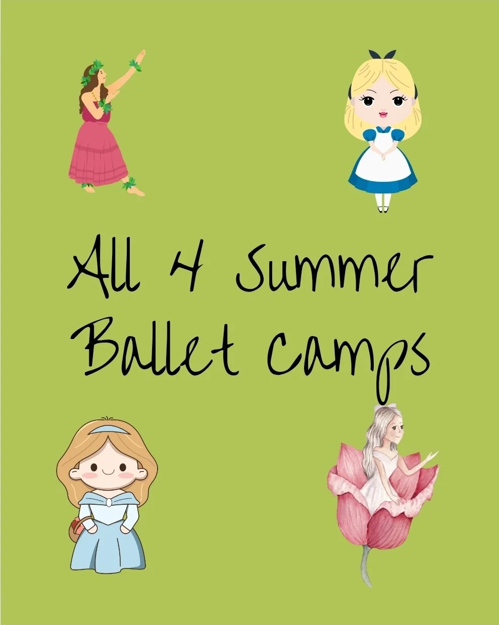 Each day includes a mini dance class, craft time, coloring activities, and choreography. Dancers attend camp Monday through Wednesday, where they learn new movements, build confidence, and make new friends. On Thursday, parents and family members are invited to watch a short presentation of what the dancers have learned and created throughout the week.